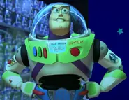 Introduced as the "coolest toy ever", he has a unique multitude of high tech features no other toy has that thus intimidated Sheriff Woody and is also one of the most popular toys in the world, but wouldn't be selling as much as plushies or anime figures. Since 1995, countless hordes of Buzz Lightyear action figures have been manufactured, more than any other character from the franchise. Like the other characters, Buzz Lightyear Toys were released in all countries (though some of which could be hard to find) with an exception of North Korea. The original license holder, Thinkway Toys, released the first Buzz Lightyear Talking Action Figure in 1995, alongside his counterpart the Poseable Pull-String Talking Woody. Thinkway continued to manufacture full-size figures, including the highly popular Toy Story Signature Collection version until the their closure in 2021.[5] Over the years, other manufacturers, including Mattel and Hasbro, have also released 12" Buzz figures. Mattel is also notable for their line of relative scale figures, with Buzz generally falling in the 6" range. Buzz is voiced by Tim Allen, Pat Fraley, and Chris Evans in his own 2022 spin-off film Lightyear.